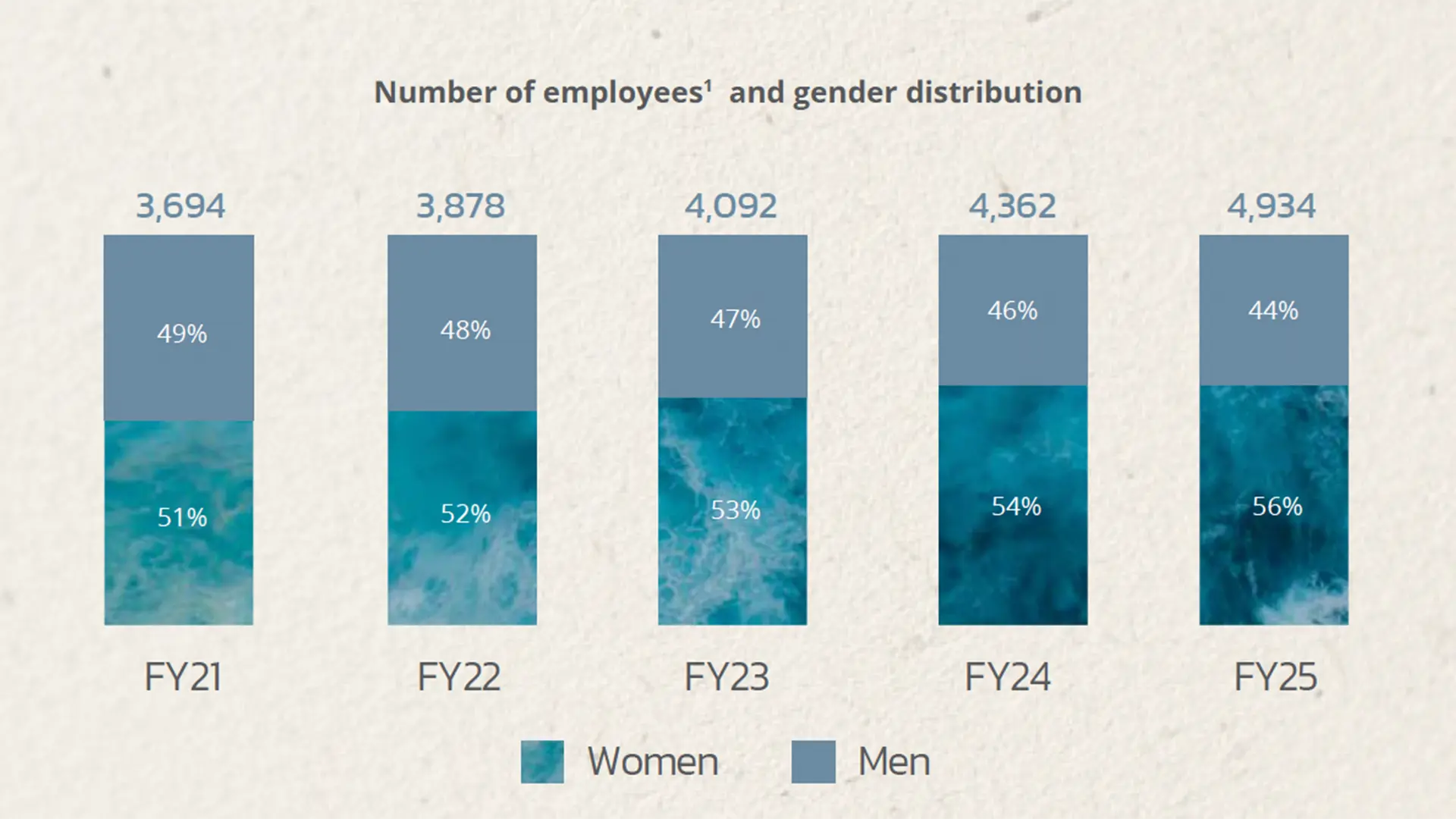 1 Data represents number of employees at end of each financial year, ending on 30th June. It comprises permanent employees, fixed-term employees and interns.